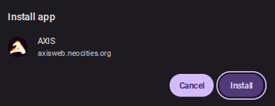 Install AXIS: Only shows when the installation of AXIS as a web app is available.