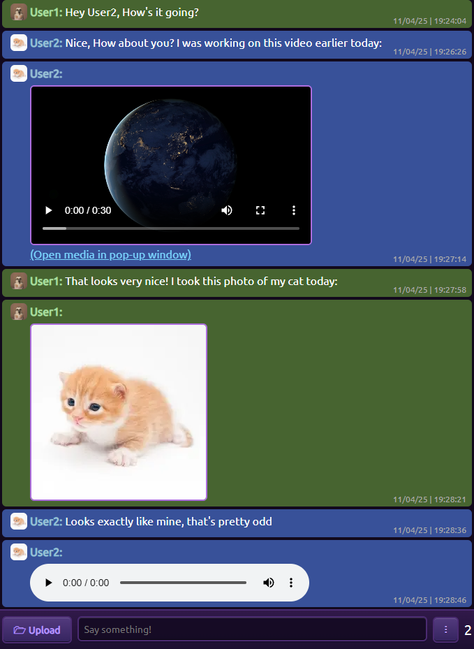 Message Bar: Type messages here, send with Enter and make a new line with Shift + Enter